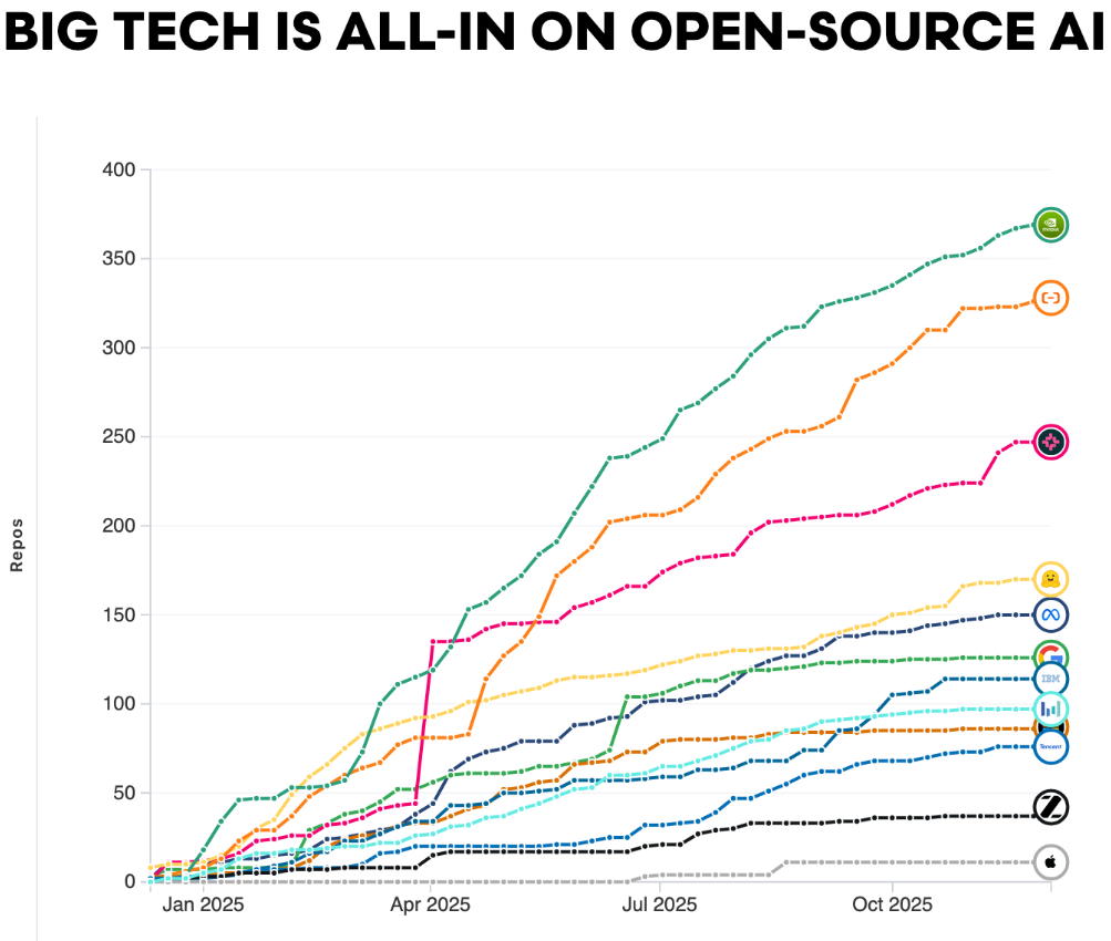 过去一年的轨迹清晰地表明,开源生态是AI开发、适配和部署实践工作大量发生的地方,其对更广泛AI格局的影响力持续增长。