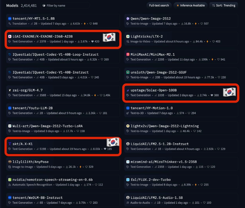 2026年2月,三个韩国模型同时登上Hugging Face热榜。
