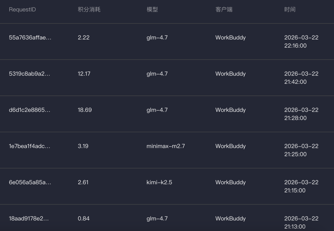 我算了一下,在 WorkBuddy,即使选用最先进的模型,简单任务只消耗个位数 Credits,一些复杂任务消耗也基本控制在十几 Credits,5000Credits 可以够用个把月了,性价相当比不错。