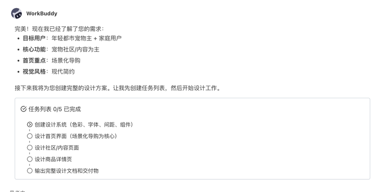UI 设计专家接收到需求后,会先问一系列问题:目标用户是谁、网站拿来做什么、想要什么视觉风格。等用户回答完,才开始工作。