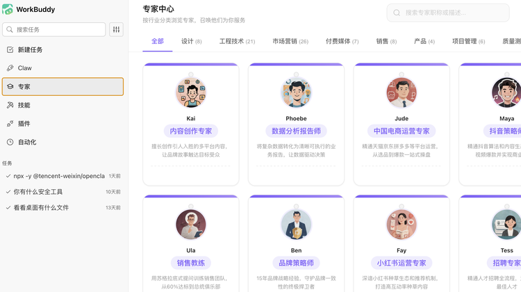 WorkBuddy 上线了 12 大领域、140+ 位行业顾问角色,官方定位是「召唤专家」。这种功能过去在 GPT 里靠手动写角色 Prompt,现在做成了产品化入口,值不值得用,取决于专家角色的深度。
