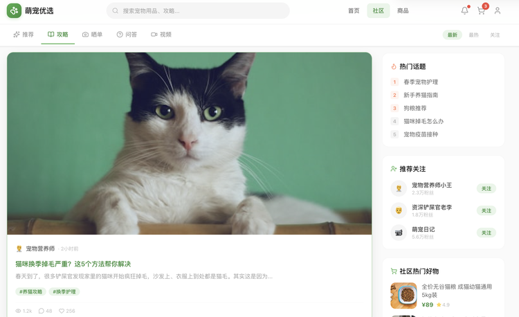 prompts:我们需要设计一个全新的用户界面,要求既美观又易用,请 UI 设计师帮我创建符合用户习惯的界面设计方案。我们的网站是宠物用品电商
