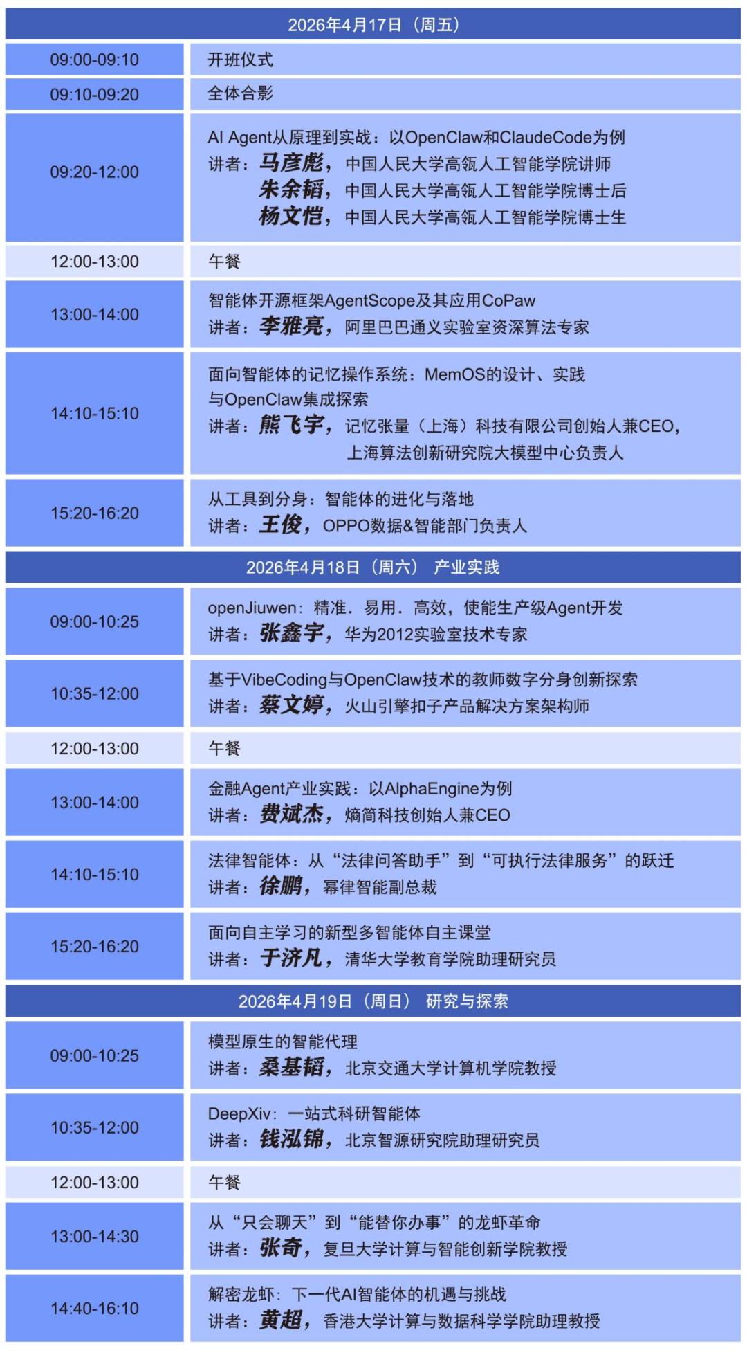 本期ADL聚焦智能体(Agent)技术,以OpenClaw实战为牵引,内容涵盖智能体技术演进路径、平台与框架及金融、法律、教育、科研等垂直领域落地场景,构建“前沿理论+开发实战+产业洞察”的完整闭环,助力学员全面掌握智能体核心能力。