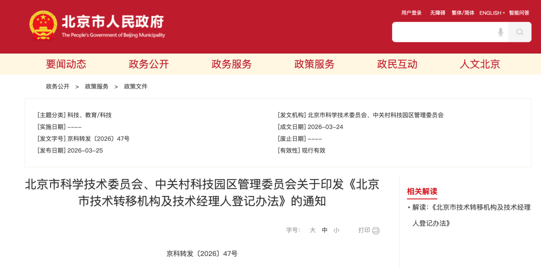 第十六条 本办法由市科委中关村管委会负责解释,自印发之日起施行。《北京市技术转移机构及技术经理人登记办法》(京科发〔2022〕13号)同时废止。