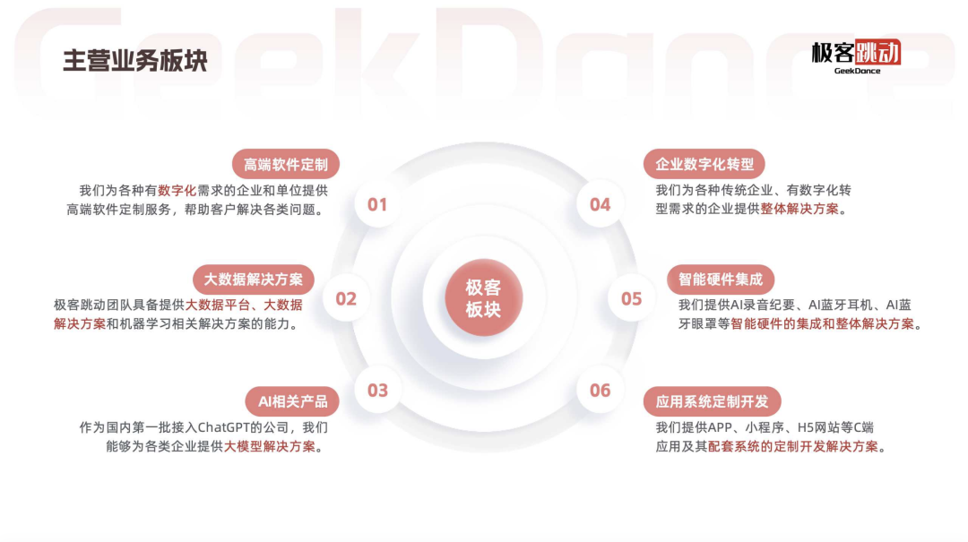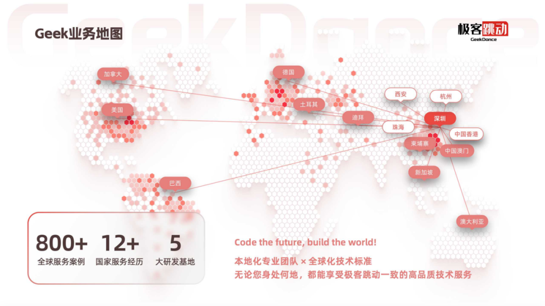 深圳极客跳动信息科技有限公司(GeekDance,下文简称“极客跳动”)自2015年成立以来,致力于为企业提供高端定制软件开发和数字化解决方案,成为全球可信赖的企业数字化战略合作伙伴。总部位于深圳,面向全球市场。公司核心团队汇聚阿里、腾讯、Google等顶尖科技企业背景的技术专家,具备复杂系统架构设计、企业级软件开发、软硬件一体化研发及全球交付能力,能够根据企业个性化需求提供可落地的数字化解决方案。