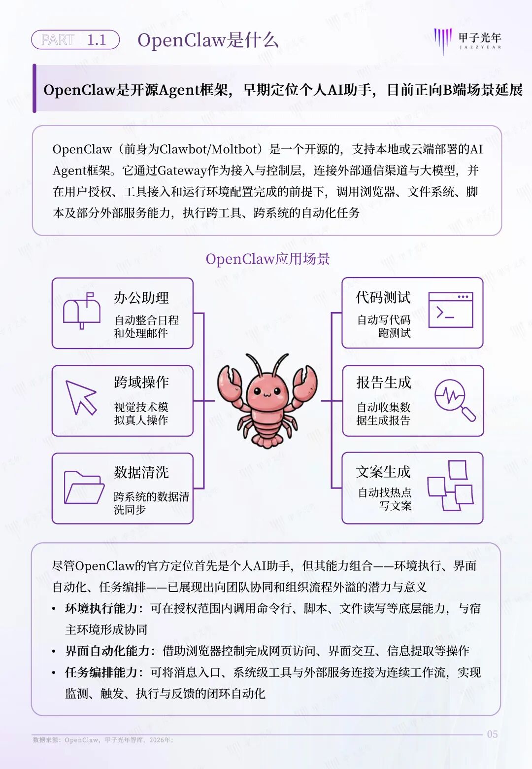 OpenClaw是开源Agent框架,早期定位个人AI助手,目前正向B端场景延展