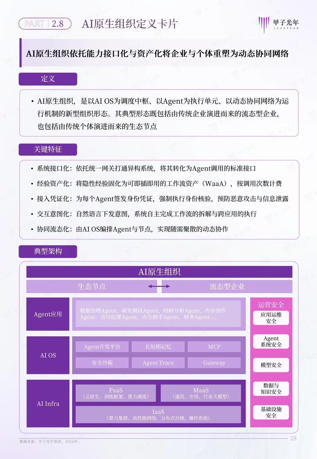 为探索组织形态演进的新趋势,甲子光年智库提出了代理式AI时代的新型组织形态——AI原生组织。