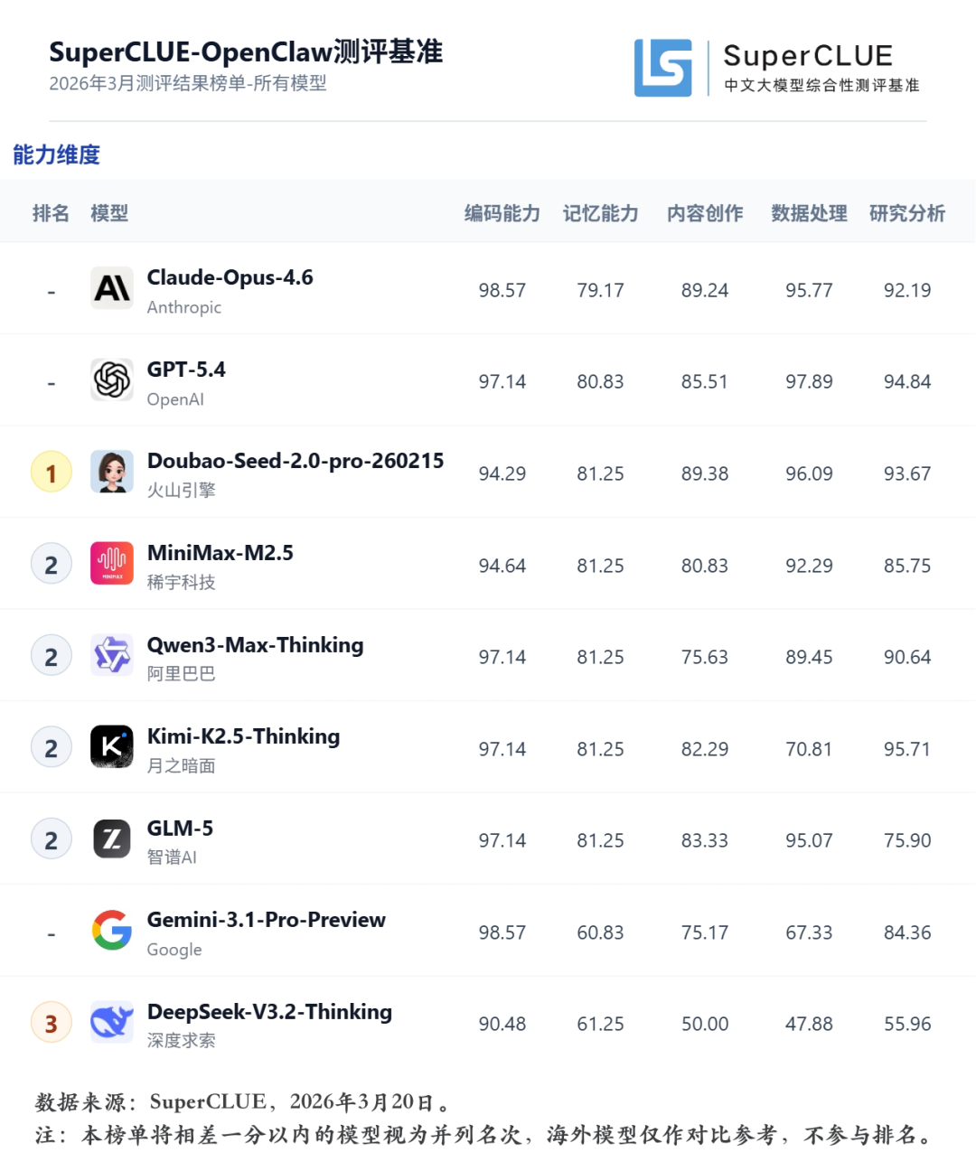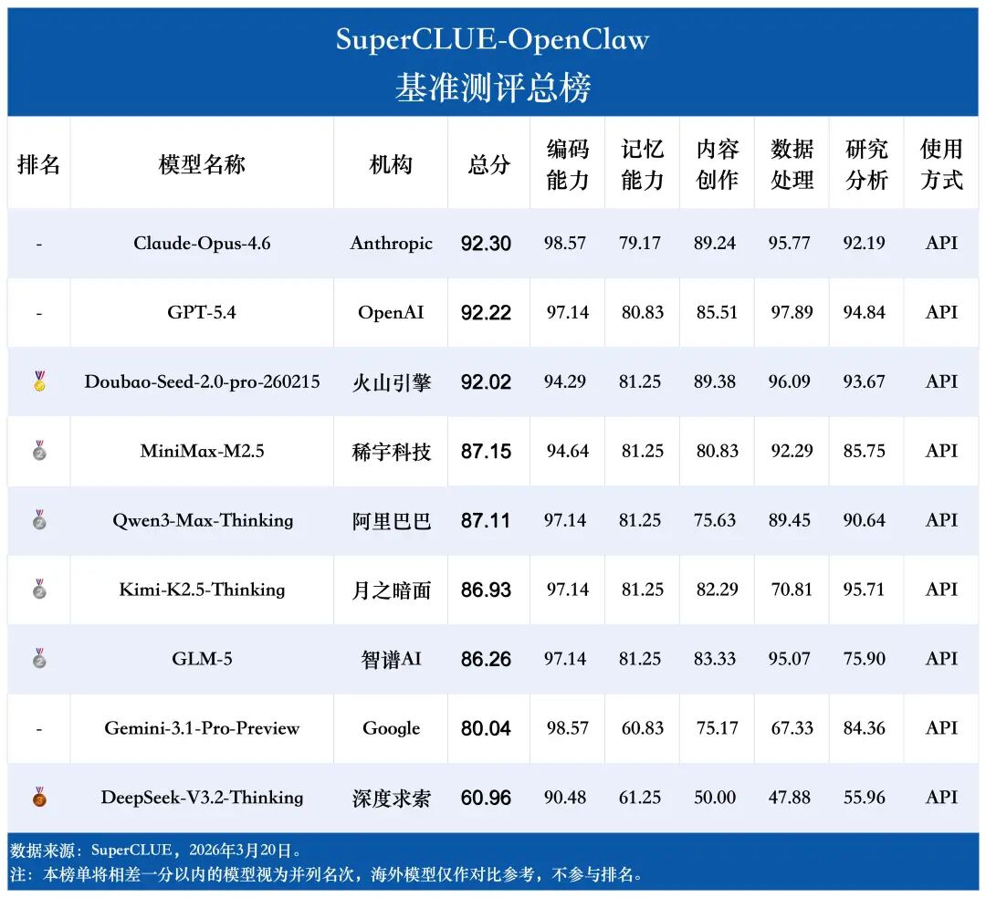 # SuperCLUE-OpenClaw榜单概览