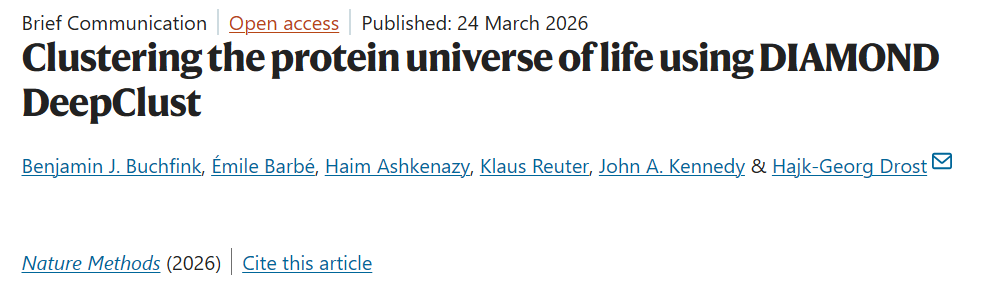 相关研究以「Clustering the protein universe of life using DIAMOND DeepClust」为题,于 2026 年 3 月 24 日发布在《Nature Methods》。