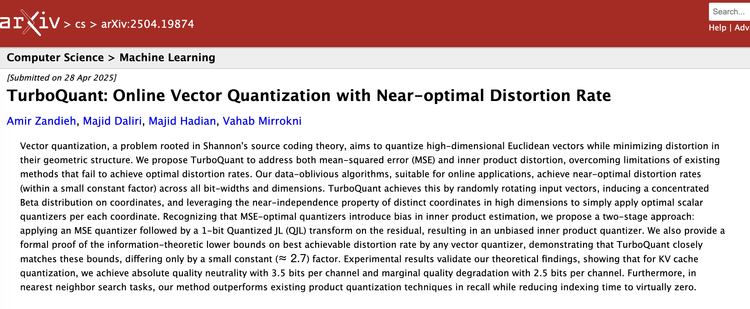 不止是这篇引发血案的论文都不是今天新的成果——TurboQuant 论文最早于 2025 年 4 月 28 日上传到 arXiv(编号 arXiv:2504.19874),至今已经 11 个月。这期间,无人谈论。