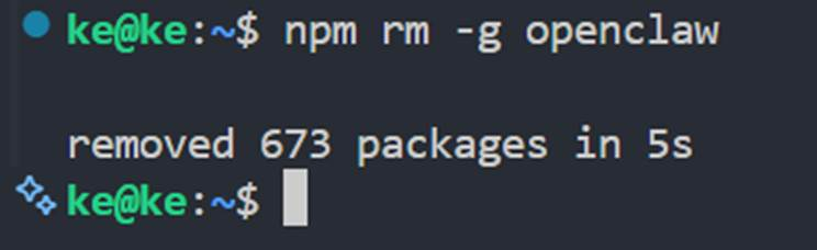 上一步执行完以后,很多人的电脑里其实还会留下 openclaw 这个命令行工具。如果你这次就是准备彻底不用了,最好把它也一起删掉。