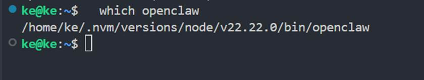 补充一个容易弄混的点: 如果你当时是按 WSL 路线安装的,就不要在 Windows 主机的 cmd 里找这套环境,而是先进入对应的 WSL 终端再执行。我们这次本地验证时,openclaw 命令实际就在 WSL 的 Node 全局路径下。