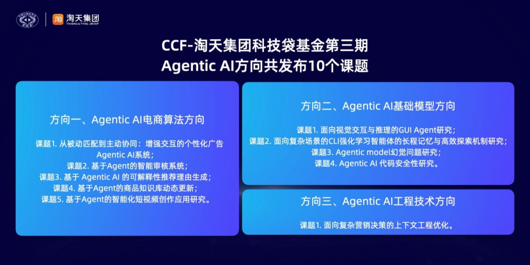 启动申报丨CCF-淘天集团科技袋基金第三期正式发布,聚焦Agentic AI方向