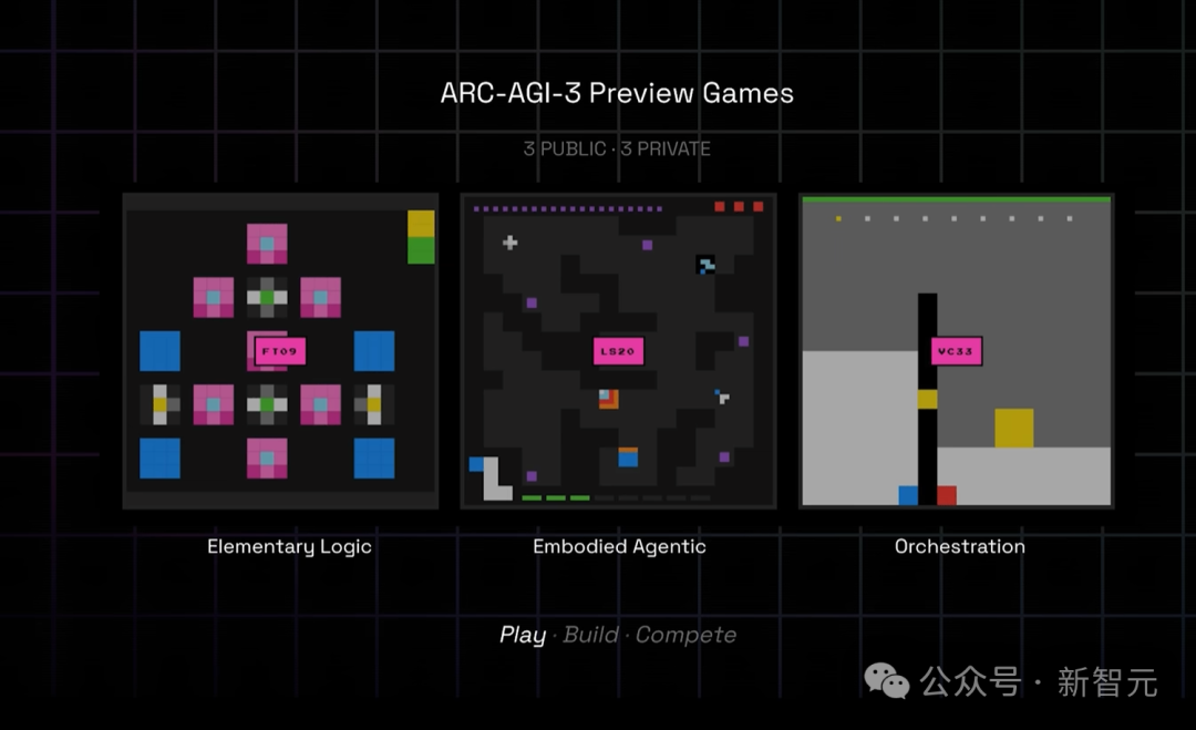 而到了ARC-AGI-3,难度直接换了个维度:从「静态题」变成了「互动游戏」。