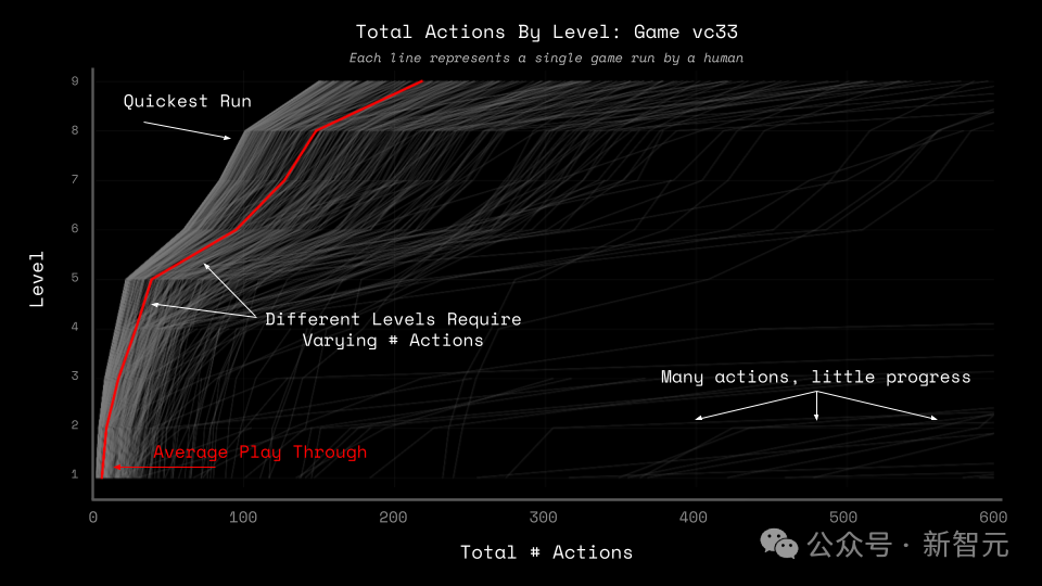 ARC-AGI-3的评分不看「有没有通关」,而是看「效率」,而且是和人类比效率。