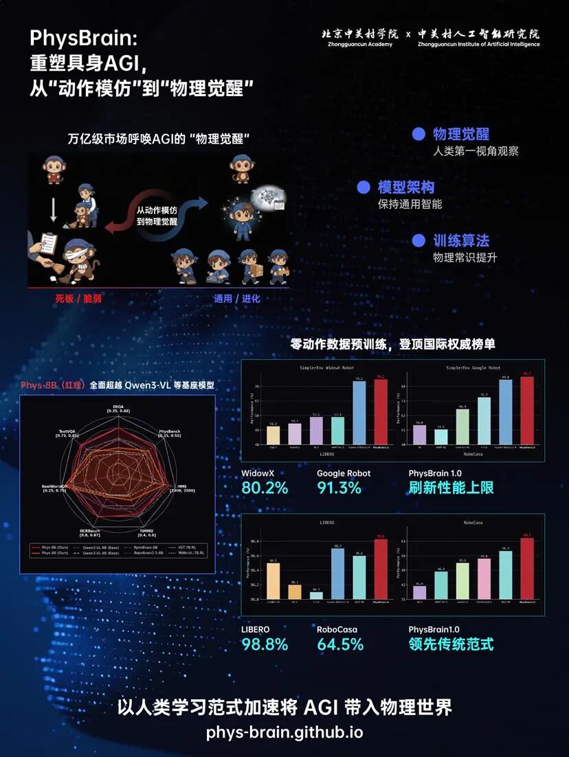 这种"理解优先"的方法论,正在获得越来越多证据的支持。深度机智近期发布的PhysBrain 1.0具身智能基座模型体系正式针对这样的思路,做出的阶段性成果。