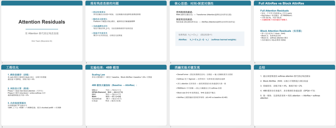 就拿Kimi最近发布的那篇比较热的论文《Attention Residuals》举个例子,21页,全英文,密密麻麻的公式和图表。