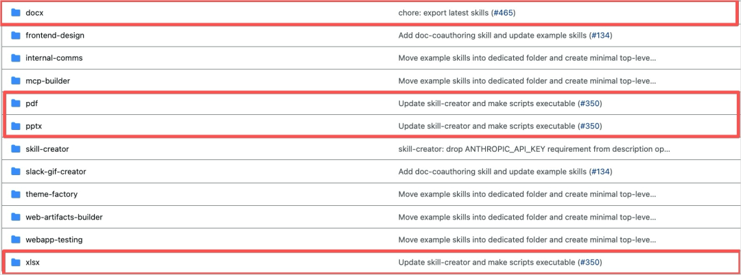 而装上了这四件套skills之后呢,里面它自带了一整套文档处理流程和代码模板。