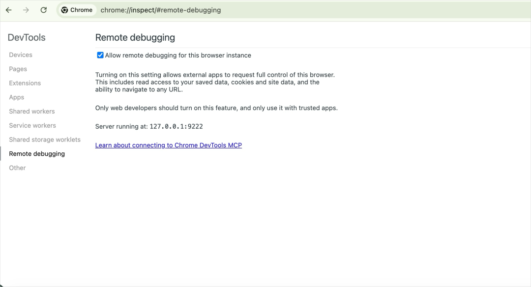 并且还需要允许远程调试,可以在地址栏输入chrome://inspect/#remote-debugging,进行勾选。