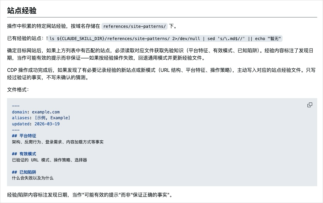 它会自己在本地按域名存一份操作记录,哪些选择器好使、哪些路径走得通、哪些坑要避开,会全都记下来。