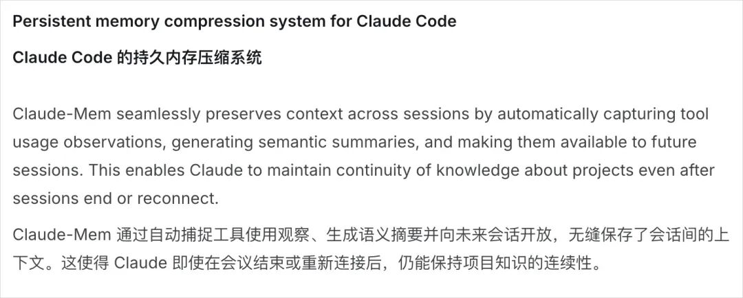 它会自动记录你每次对话里的关键信息,压缩存下来,下次开新会话的时候自动注入相关的上下文。