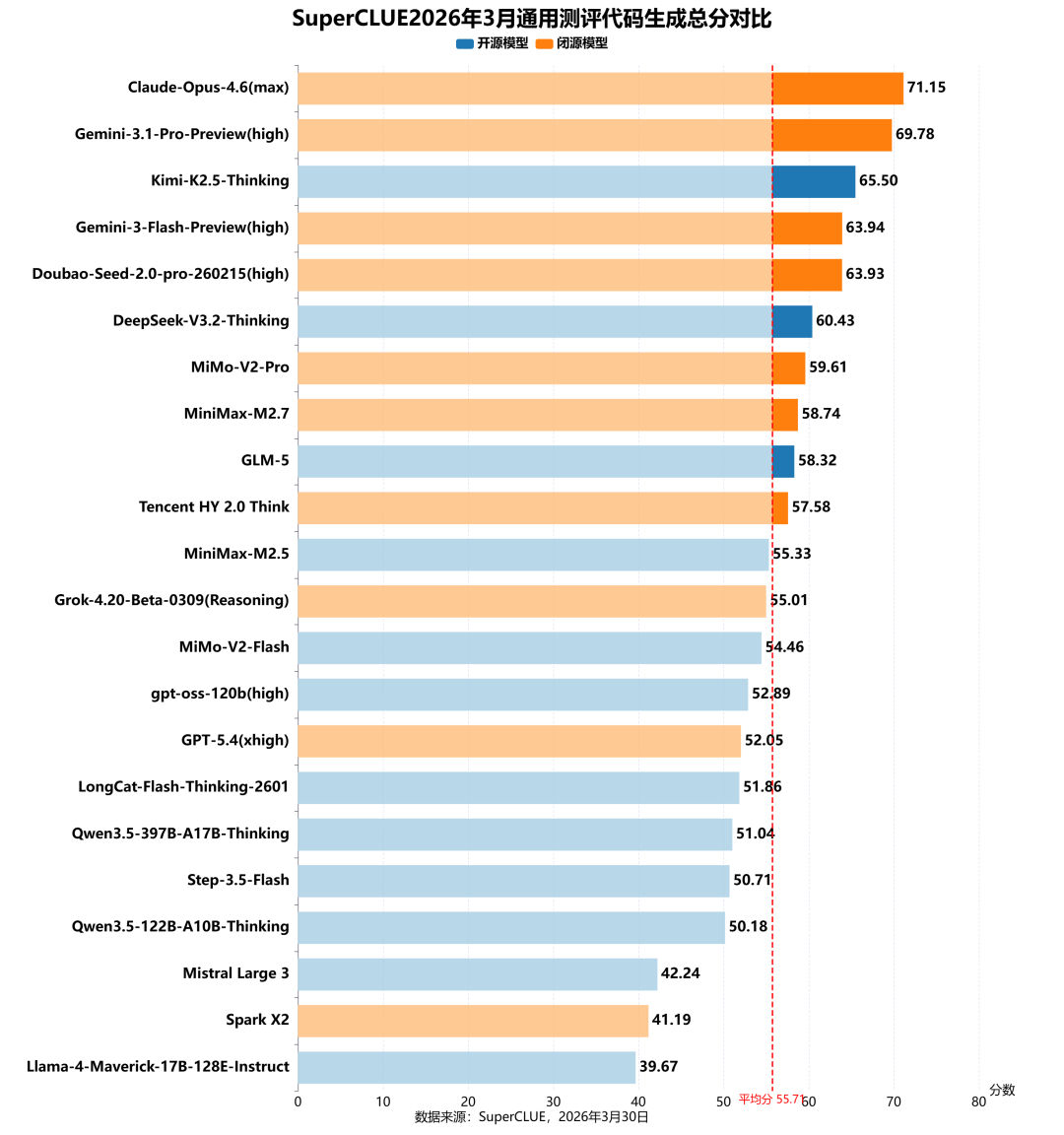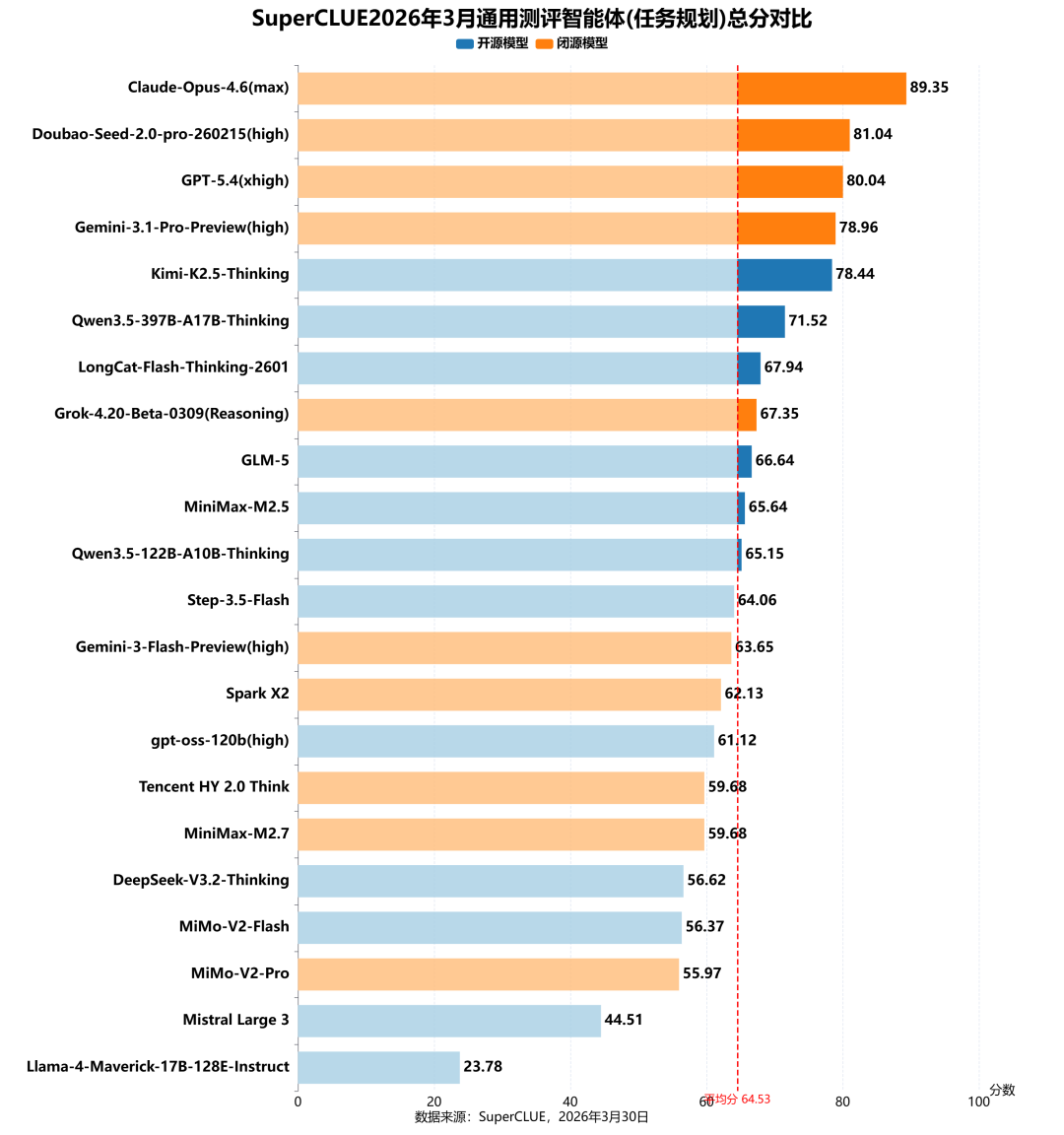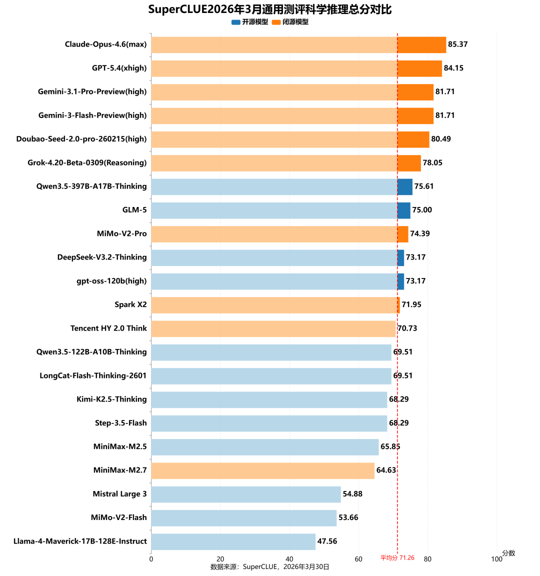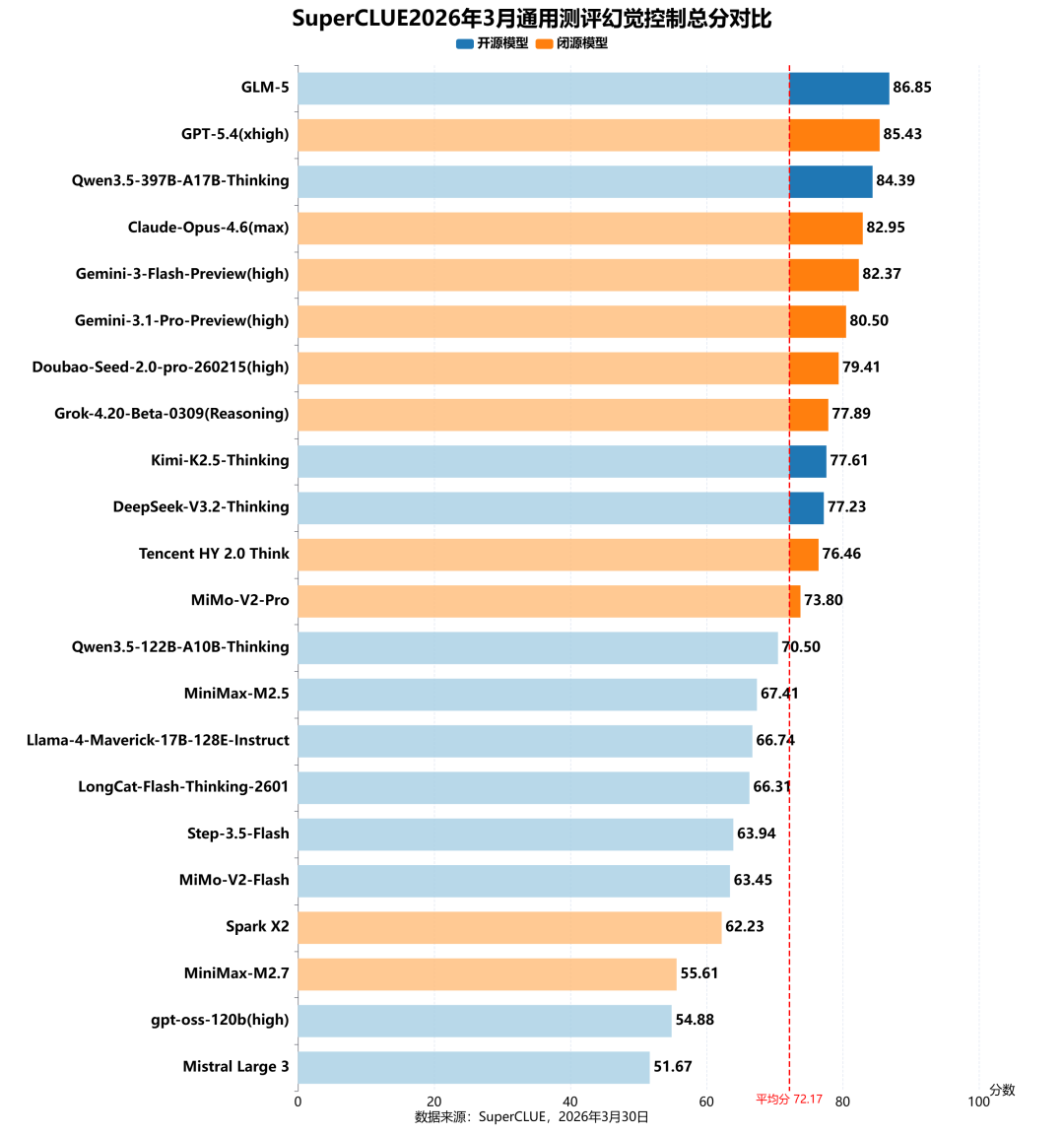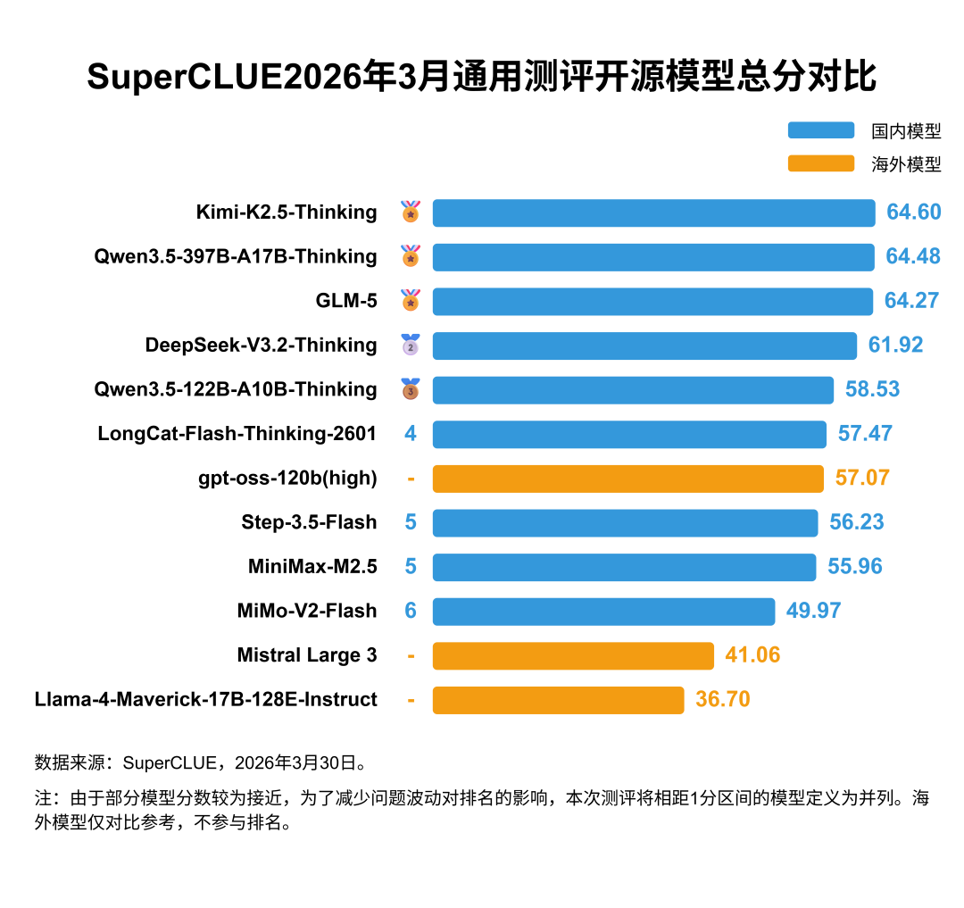 二、SuperCLUE2026年3月通用测评开源模型榜单