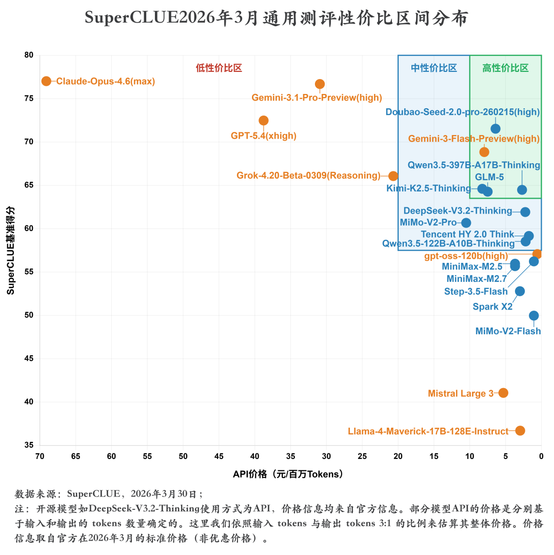 四、SuperCLUE通用测评性价比区间分布(2026年3月)