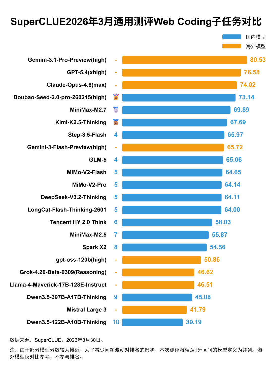 (2)Web Coding:海外头部模型占据前三,国内模型紧追不舍