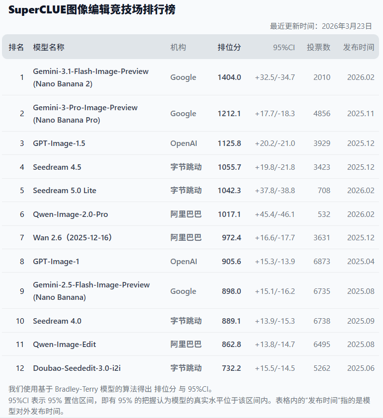 # SuperCLUE 图像编辑中文竞技场排行榜