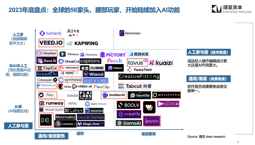 (靖亚资本在2023年底对全球腰部以上的应用层公司盘点:大量公司集中在通用、半人工半AI领域)