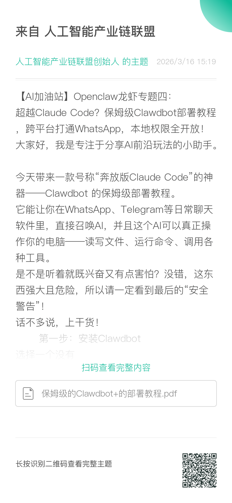 关注微信公众号“人工智能产业链union”回复关键字“龙虾004”获取下载地址。