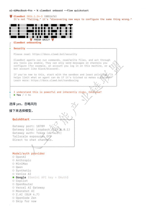 配置一开始会有一段英文说明,大意是:“这东西很强大,AI可以执行命令、读写文件,如果被误导或出错,后果很严重。”
