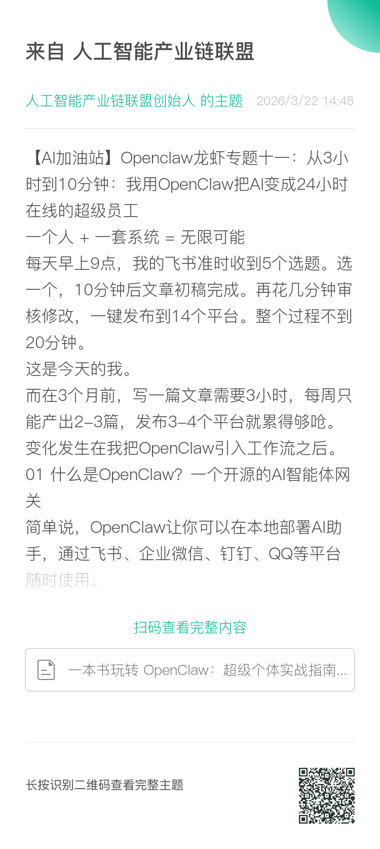 【AI加油站】Openclaw龙虾专题十一:从3小时到10分钟:我用OpenClaw把AI变成24小时在线的超级员工(附下载)