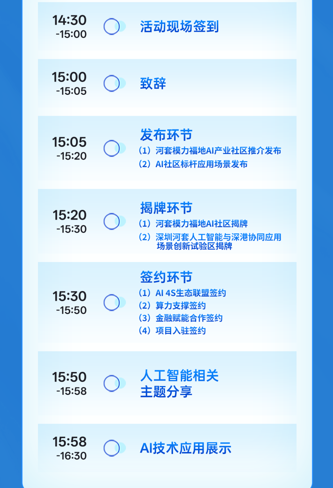 为展示福田区在人工智能领域的创新发展与生态活力,推广AI产业社区,特举办此次活动。本次活动将集中呈现福田区在河套布局AI领域的创新实践、政策支撑与生态活力,进一步深化深港两地在技术、资本、数据与场景方面的协同联动,推动深圳打造人工智能先锋尝试,促进优质产业资源集聚福田。