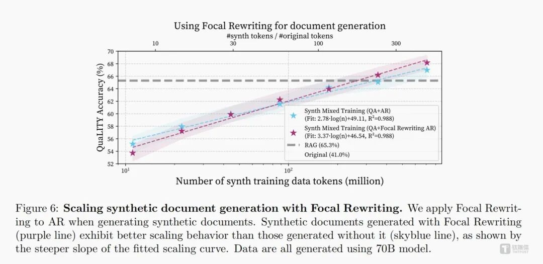 为了进一步提升训练效率,避免模型耗费精力在冗余、重复的无效信息上,团队还配套推出聚焦重写技术。这项技术相当于为AI划定核心考点,引导生成的文档紧扣关键问题展开,剔除无关内容,让模型集中吸收高价值知识点,大幅提升学习效率。