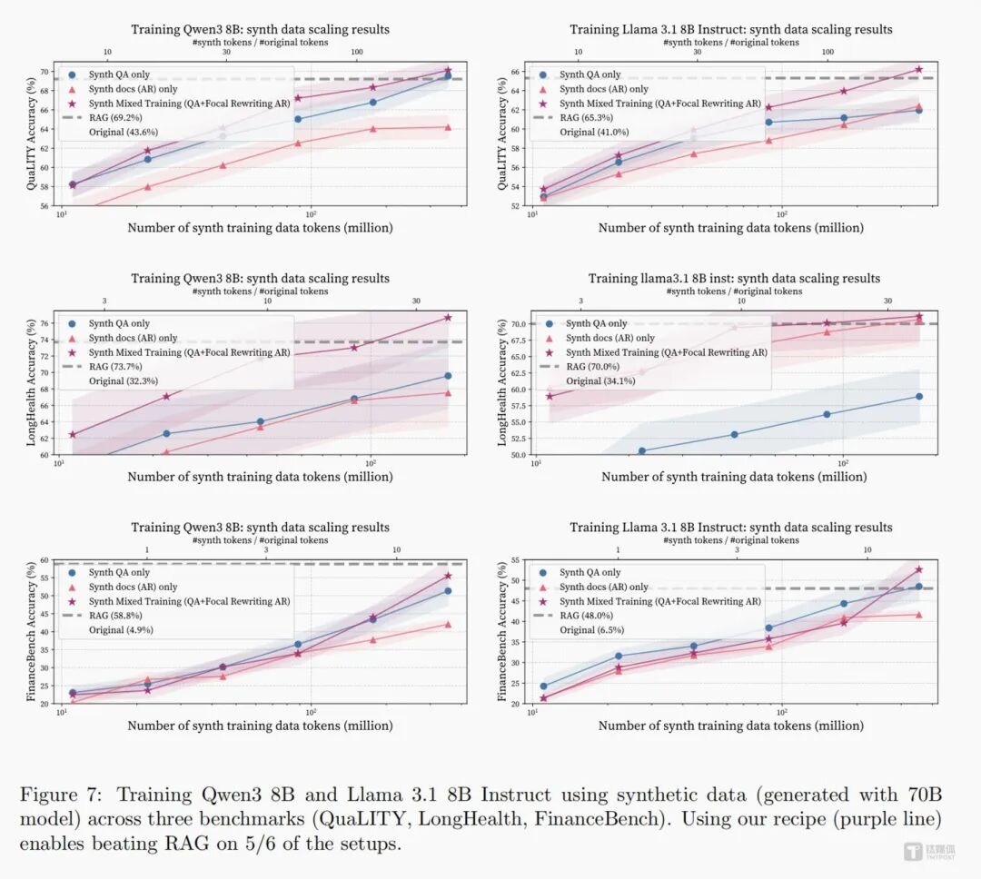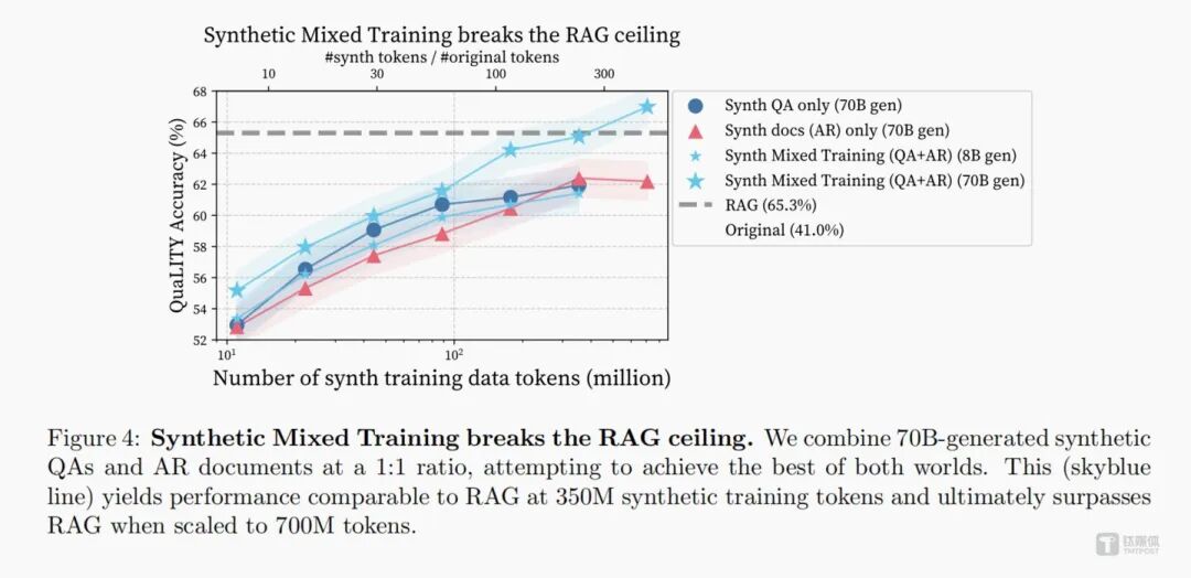 ▎合成混合训练技术首次超越RAG。