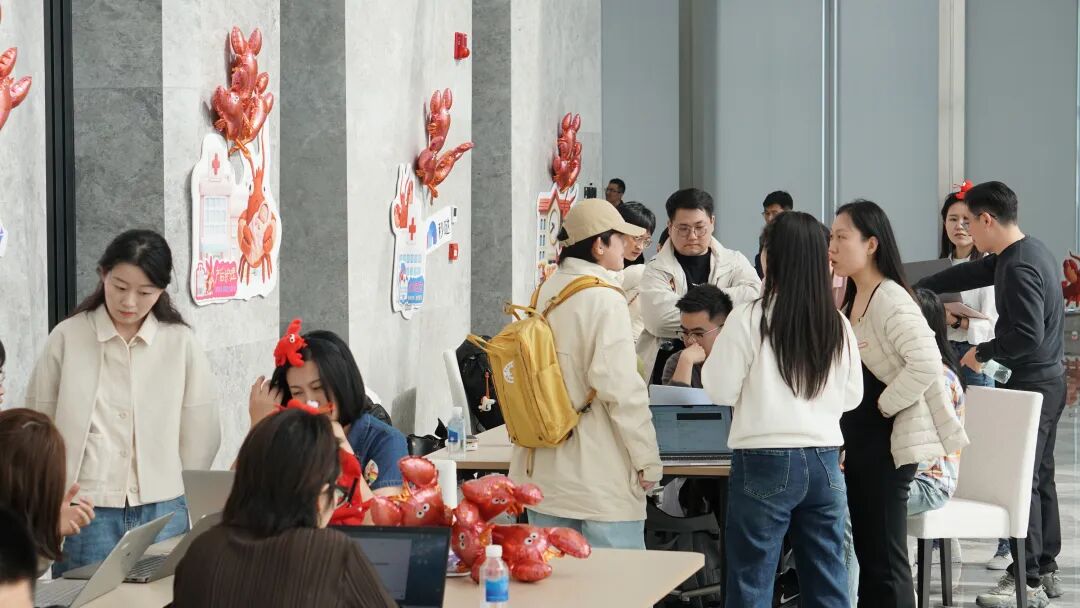 广州场更是来了满满当当上百位朋友!有人抱着电脑来装虾,有人在不同区域来回穿梭,也有人一路从「出生地」逛到「写字楼」, 硬是把一整条龙虾街区玩明白了。