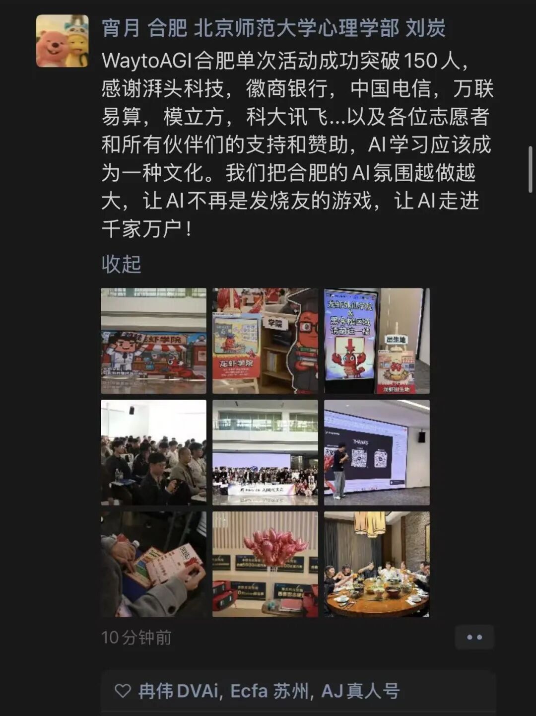 合肥场这次到场人数很多,现场布置很到位,吸引了各个年龄段的AI爱好者。从学生到职场人到退休老师,大家坐在一起学装虾、做skill,这种画面很难得。