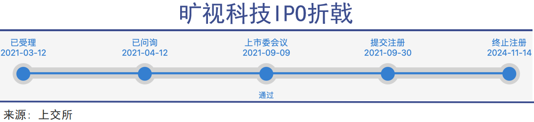 2019年,旷视向港交所递交招股书,上半年营收9.49亿元,冲击上市。那是旷视最接近“胜利”的时刻——估值超过400亿人民币,成为中国AI“四小龙”之一。但命运在临门一脚时急转直下——10月,美国将其列入实体清单,港交所要求答辩,上市被迫搁置。转战科创板时,又撞上大股东蚂蚁集团的监管风波,尤其是上交所于2021年9月已经通过,并提交注册的情况下。IPO两度受挫,外部环境骤变,现金流承压,曾经最耀眼的AI独角兽突然进入漫长消化期。