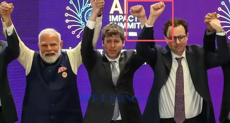 2 月,印度 AI 峰会,莫迪与全球科技领袖合影