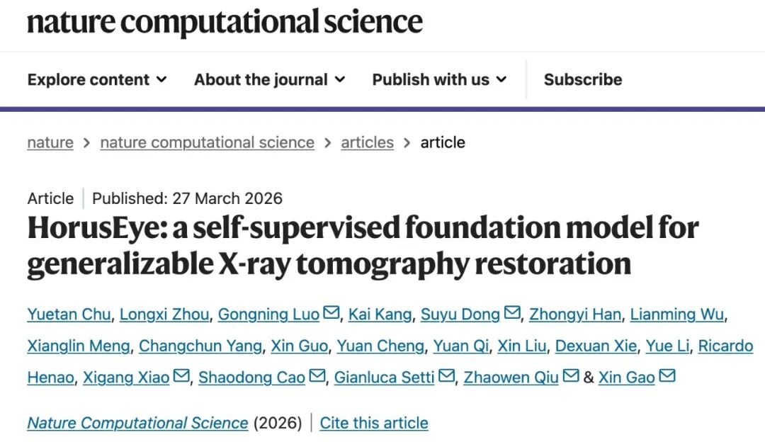 破局X射线断层成像修复!KAUST、上智院等提出通用自监督基础模型HorusEye,登Nature子刊