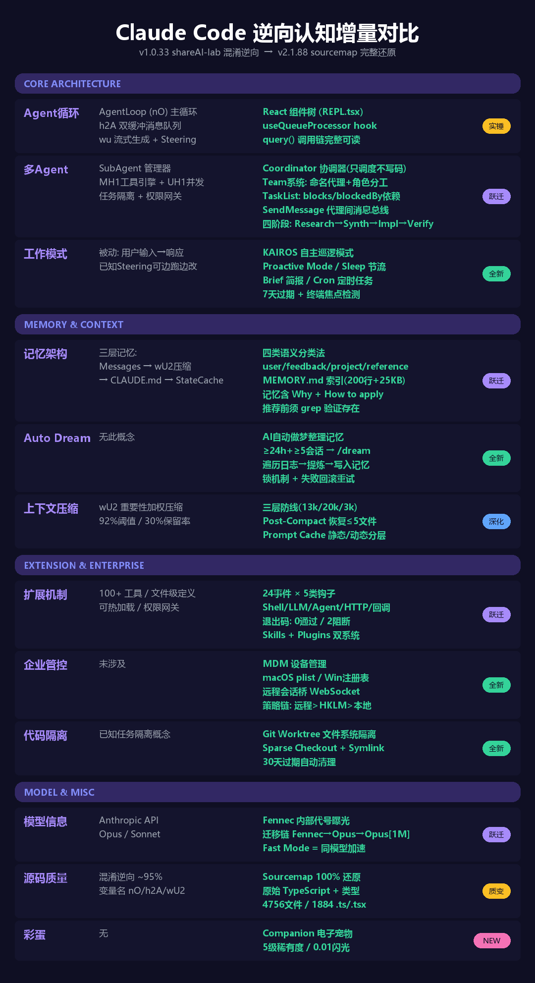 先上一张图,给大家快速对比一下:相比去年那版 Claude Code 拆解,这次 v2.1.88 到底又多暴露了哪些信息。去年的分析我也放这里,方便一起对照看: