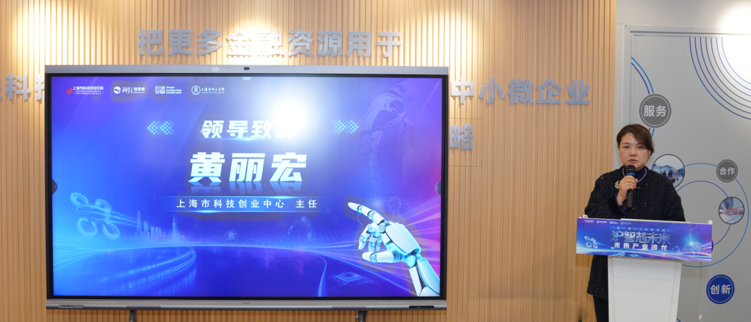 上海市科技创业中心主任黄丽宏在活动致辞中表示:“举办未来产业沙龙的初衷是希望通过搭建产学研用金深度对接的开放平台,聚合资源,让思想碰撞、技术耦合、以小切口撬动大创新,以常态化交流凝聚高质量发展合力。”同时她对今天的沙龙活动提出三点期望:一是带动颠覆性技术与原始创新实现更多突破;二是激活产业新动能,壮大未来产业集群;三是共筑创新生态圈,为上海人工智能长远发展筑牢根基。