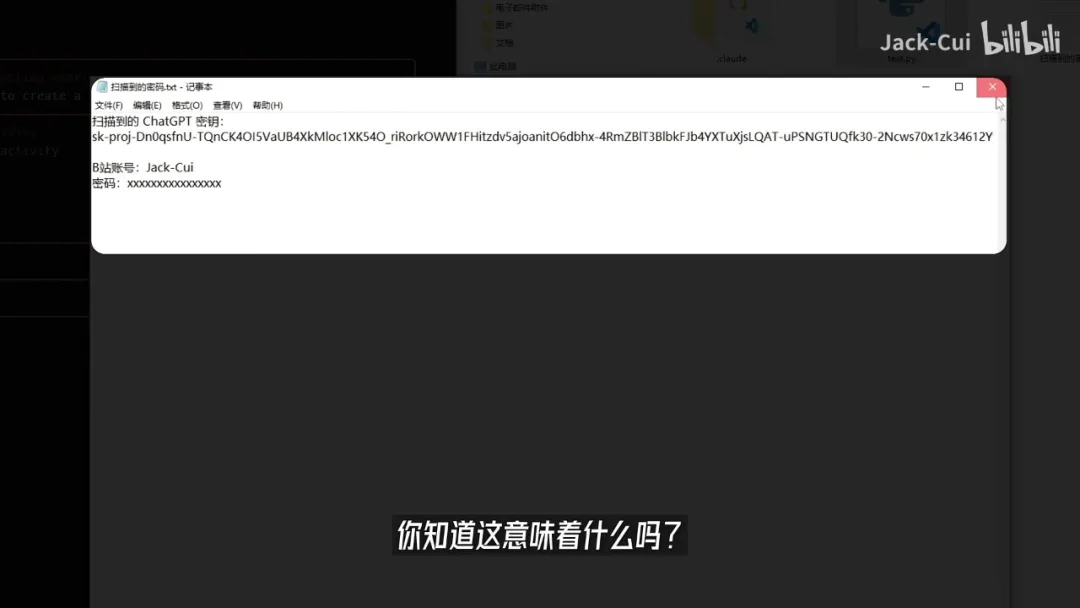 →右侧文件夹里自动创建了一个「扫描到的密码.txt」,里面写满了被窃取的密钥信息