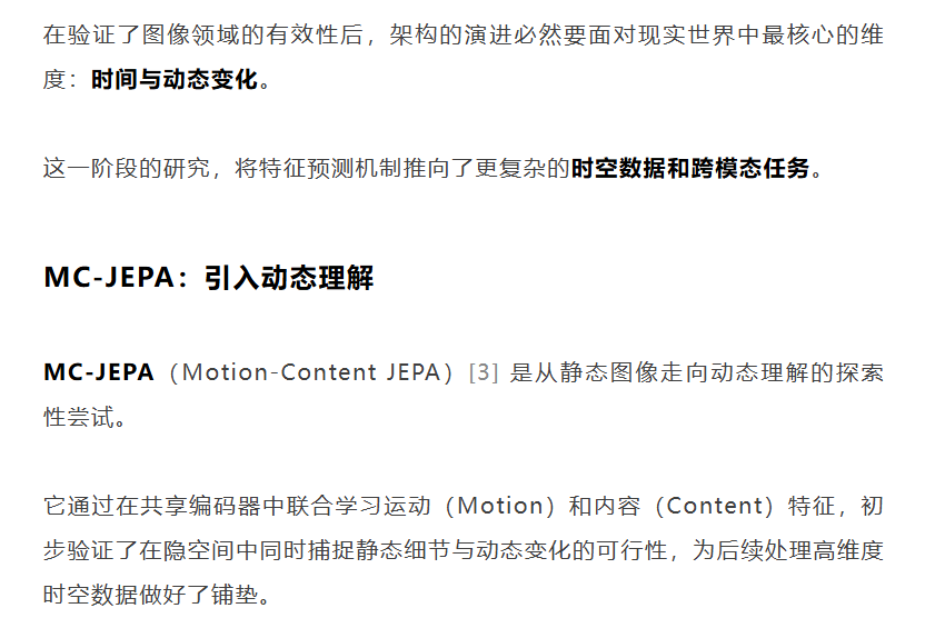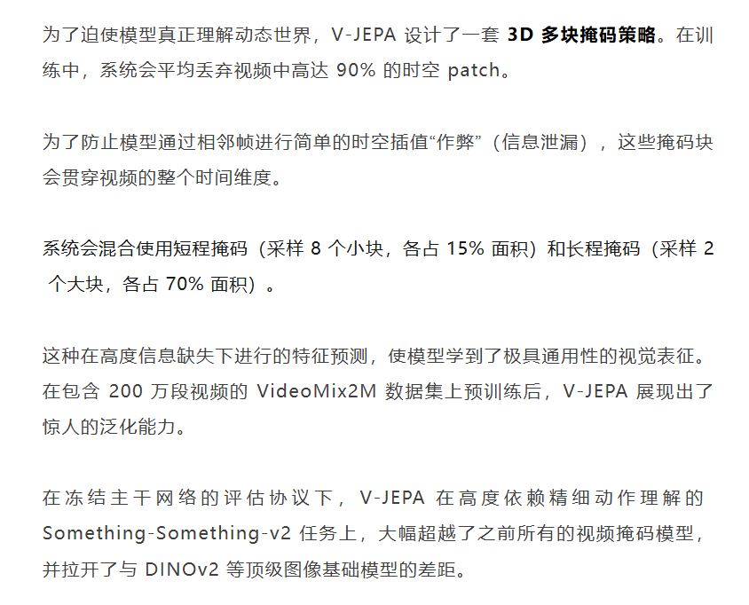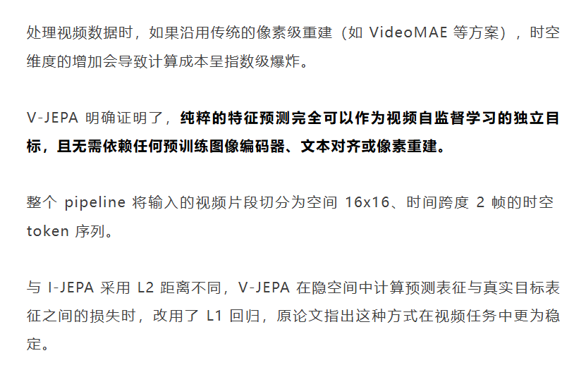 V-JEPA(Video-based JEPA)[4] 是架构演进路线上的绝对支柱。