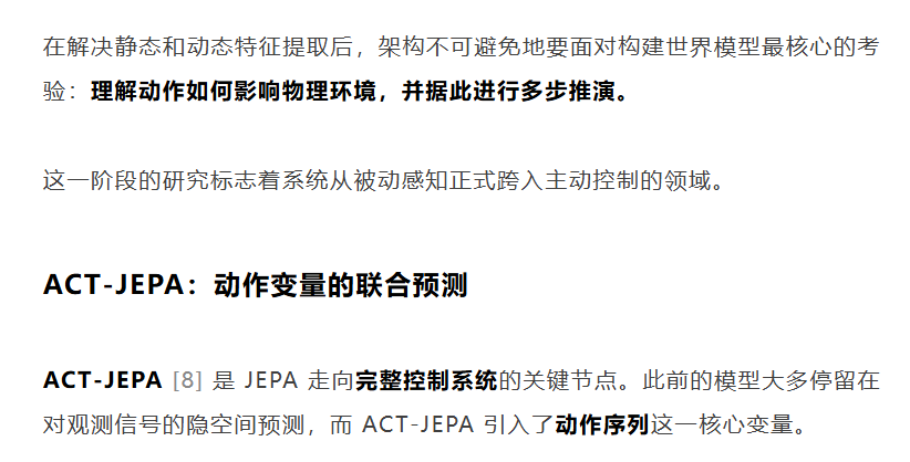 从图像上的隐空间预测,到扩展至视频与三维空间等多模态数据,再到最终实现端到端的动作规划,JEPA 架构已经走出了早期自监督特征提取的范畴。