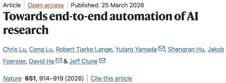近日,《Nature》重磅报道了Sakana AI联合牛津大学、UBC推出的全自动AI科学家「The AI Scientist」,标志着AI首次独立完成科研全流程:从提出新想法、设计实验、运行代码、生成图表,到撰写论文并参与同行评审——全程无需人工干预。