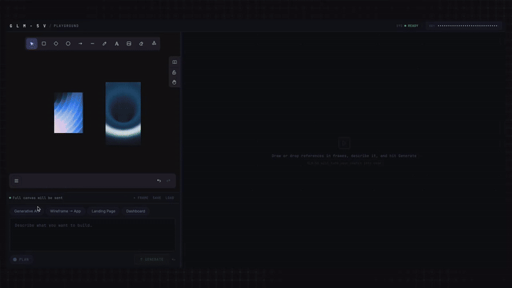 GLM-5V-Turbo Playground:左边是手绘草图,右边是生成的完整前端页面