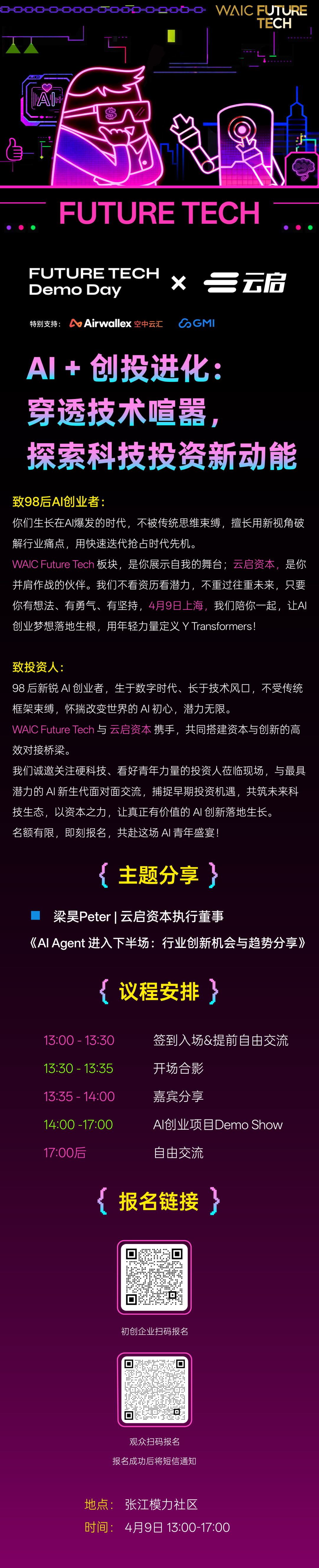 Future Tech | 让AI创业落地生根,4月9日跟随云启资本穿透科技投资新动能!即刻抢座→