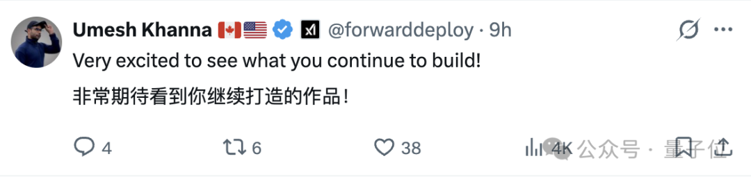 「超级期待看到你们搞出来的后续成果!」xAI的Umesh Khanna闪现评论区,这么回复道。